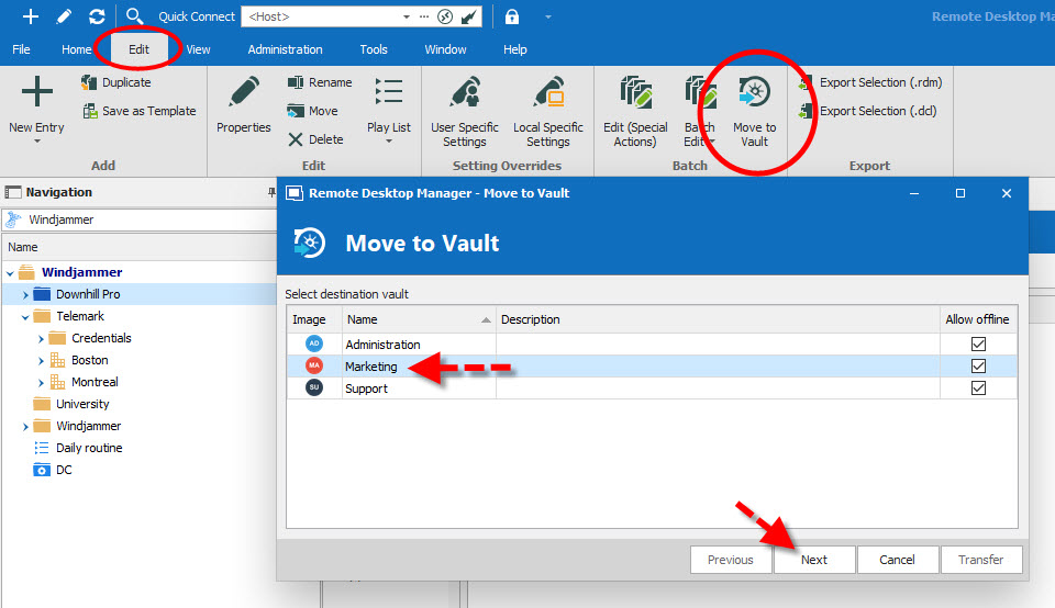 - Go to the Vault you want to transfer entries from.
