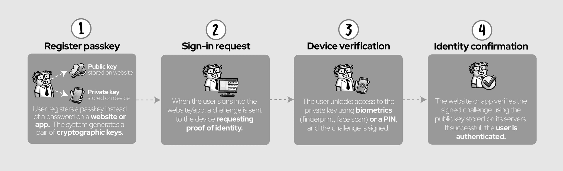 Passkeys aim to resolve this complexity by offering a more streamlined and secure authentication experience. Since smartphones are widely used and already support biometric authentication — such as fingerprints and facial recognition — they provide an ideal platform for passkeys. By leveraging these capabilities, passkeys allow users to authenticate themselves using their phones, effectively replacing the need for memorized passwords. With a simple confirmation on their smartphone, users can authenticate securely and efficiently.