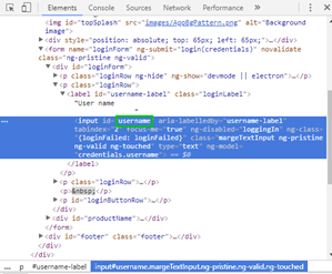 - You will see the corresponding IDs to be used in the HTML Control ID tab of the web session in Remote Desktop Manager. Below is an example of the inspection for the Username field, and you can see that the Username ID is username.