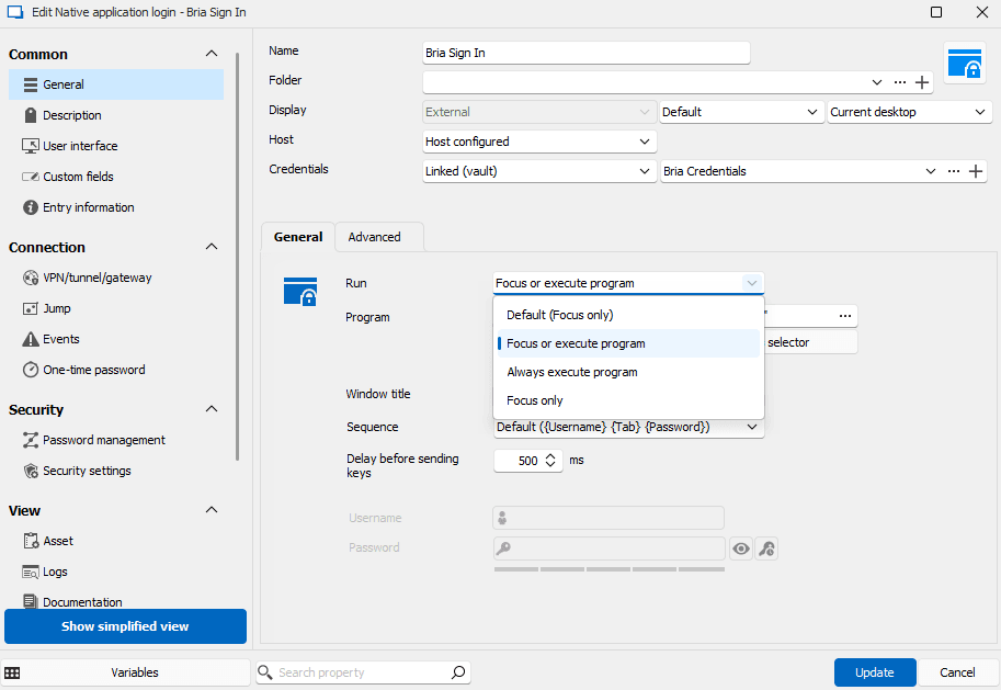 The native application login is a tailored session intended to quickly help you log into and work in applications that don’t typically play well with password managers. This new session also takes the guesswork out of setting up a specific login process. The typing macro entry type, while perhaps more flexible for command sequences, is clearly outshined by the ease of use of the new native application login session.