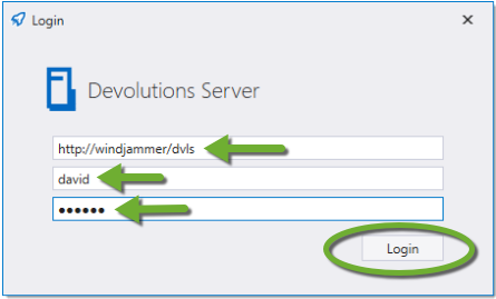 Choose Source —> Loginfrom the side menu, and enter your Devolutions Password Server URL, username and password. Then click Login.