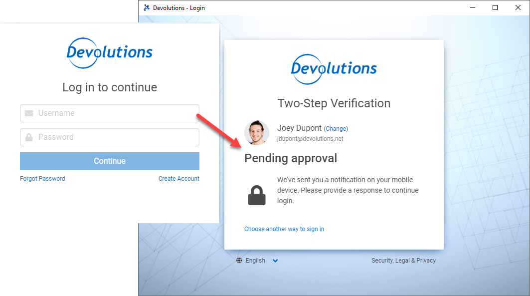 - Log in with your Devolutions Account credentials.