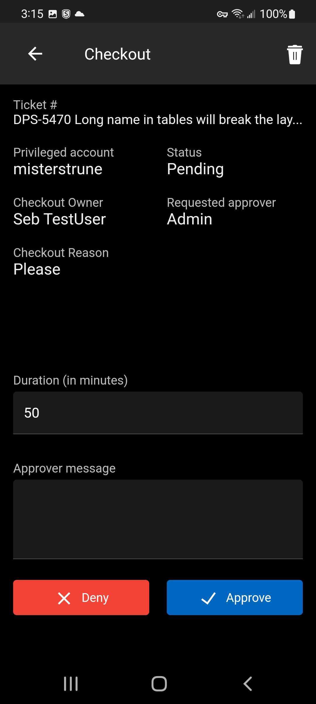 - New Checkouts (PAM): view the active checkouts, grant or deny a checkout request, and force check-in, directly from the Devolutions Server mobile app in Devolutions Workspace.