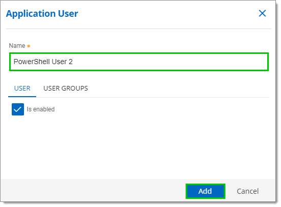 Step 4: Name the Application User and click Add.