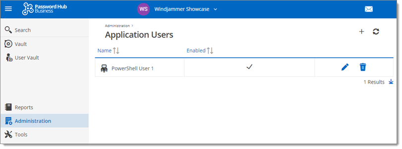 Step 1: Launch and connect to Password Hub Business. Step 2: In the Administration Menu, select Application Users.