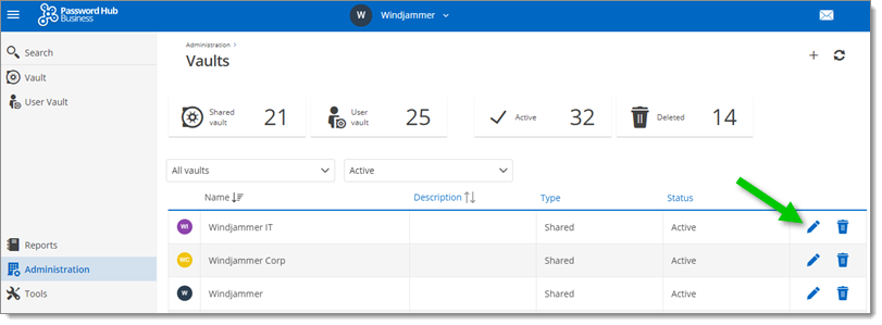 Step 1: In Administration - Vault, click on the edit pencil icon next to the vault to set permissions.