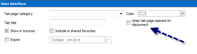Since this is for tabs, the session must be running embedded. You’ll notice a new action in the settings section : “Keep tab on disconnect”