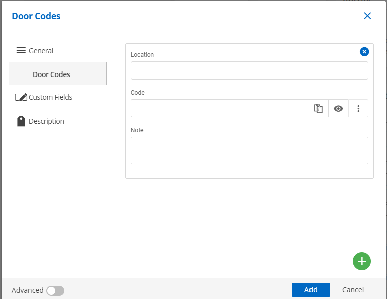 New Information Entry Type: Door Codes