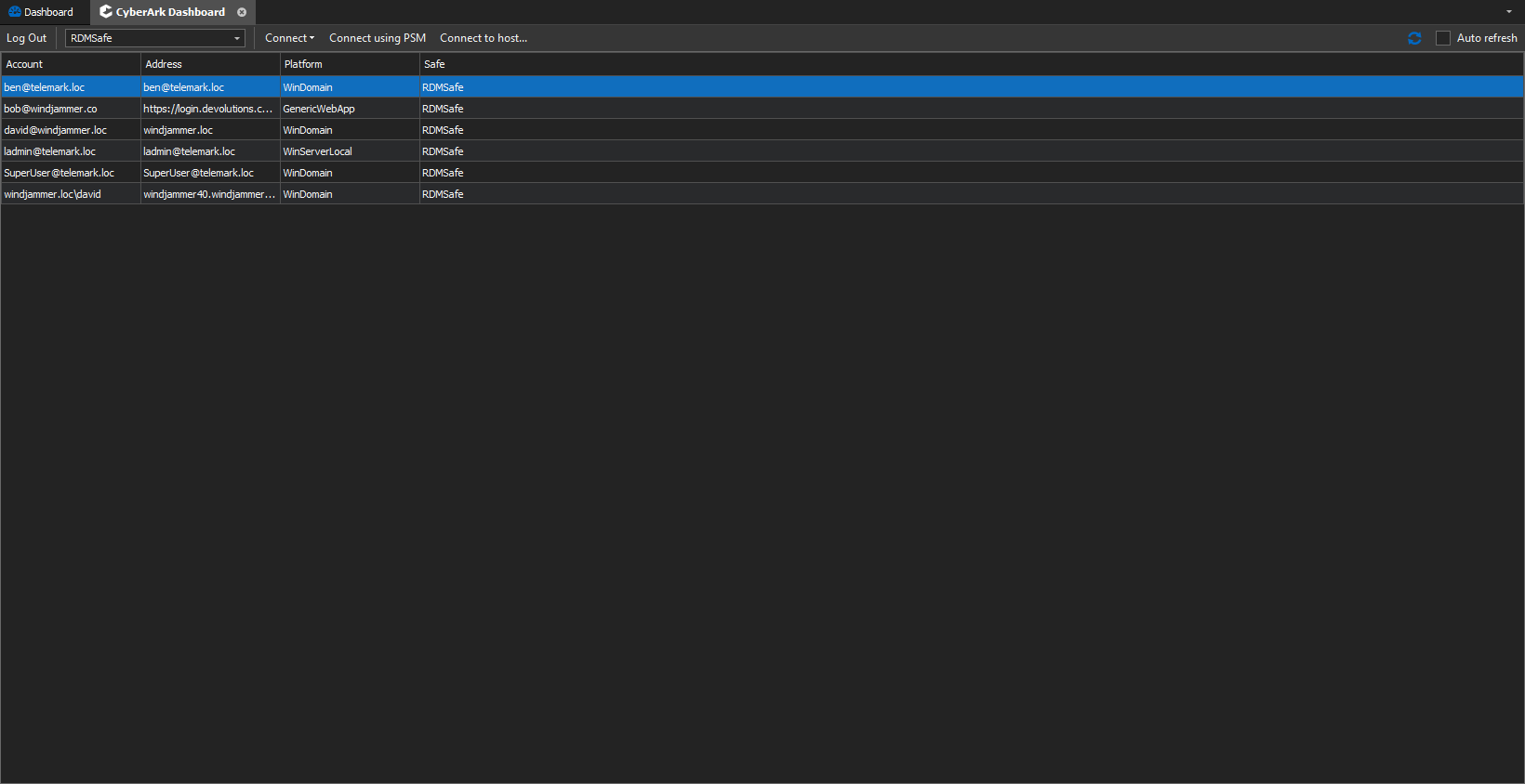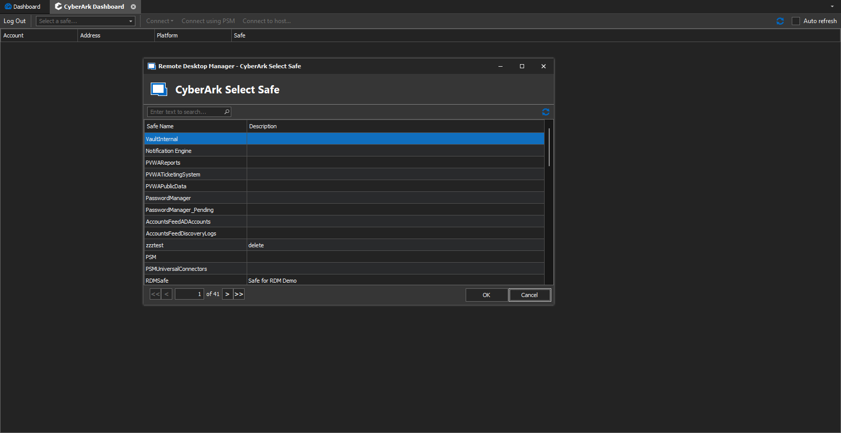 The RDM-CyberArk integration is even better! Now you can launch a console and see a list of accounts that are stored in your CyberArk vaults, and then use them to open remote hosts (please also see the note for CyberArk customers in the next section).
