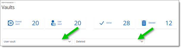 - In the dropdown menus, select User vault and Deleted.