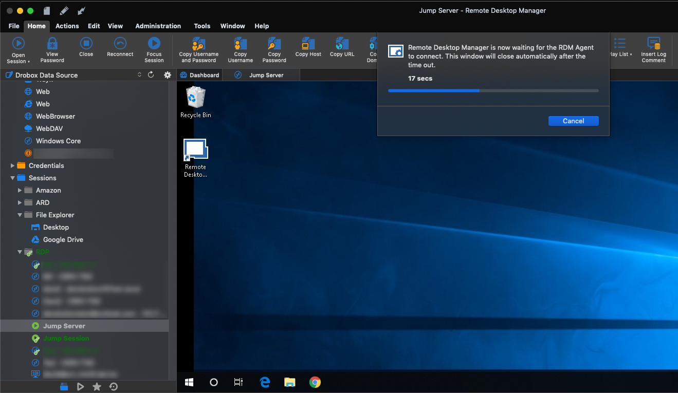 - Now simply launch your session. RDM Jump will open automatically and establish the connection. Think of it like a session within a session.