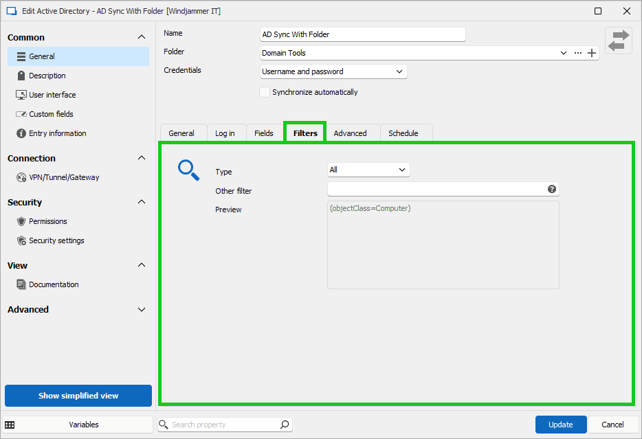 - Apply filters (optional): You can set filters to include or exclude specific servers or computers. This is useful when you want to sync only certain endpoints.