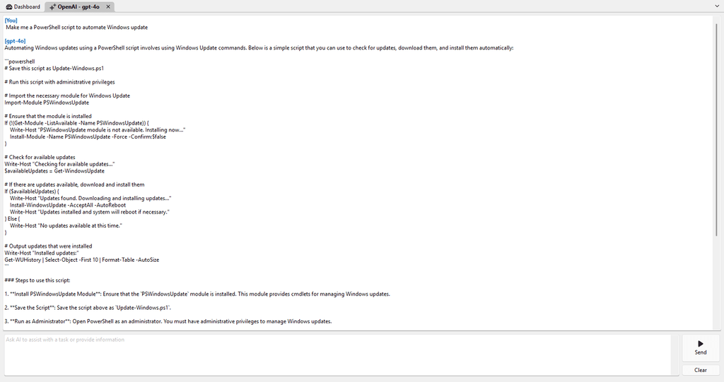 IT administrators often rely on PowerShell scripts to automate tasks. The RDM AI assistant can: