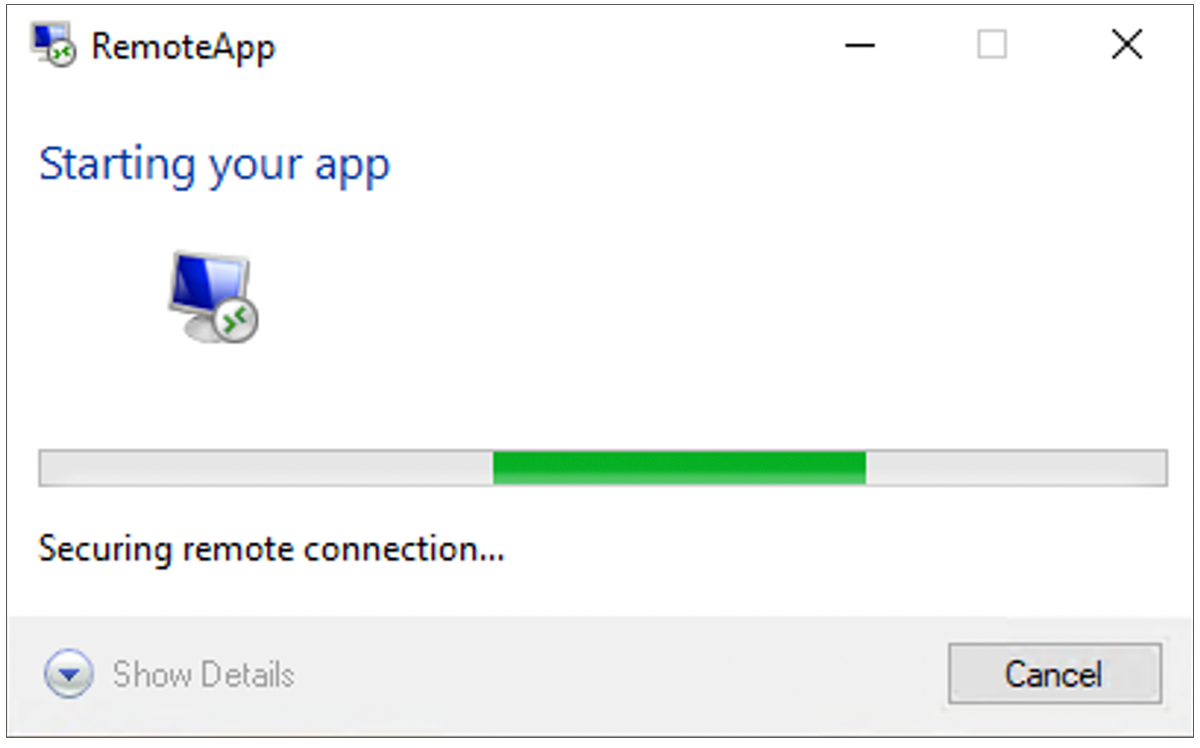 6.Launch your newly created hosted RDP entry. You should see an external RemoteApp launch window.