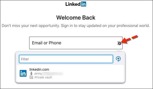 - Go to the login page of your web app (e.g. linkedin.com). You’ll notice the DWL icon in the login box. Simply click on the icon and select the correct entry to automatically log into your account.