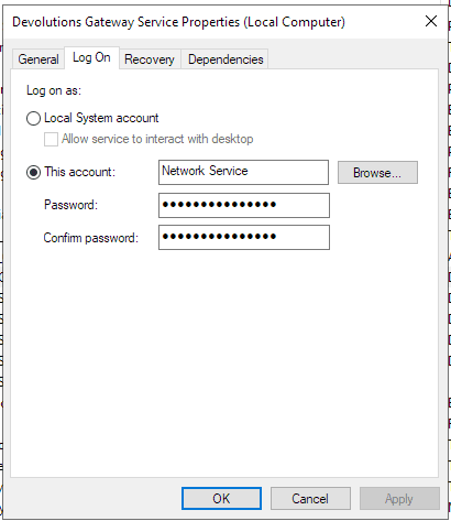 Installing Devolutions Gateway as the NetworkService account in Windows