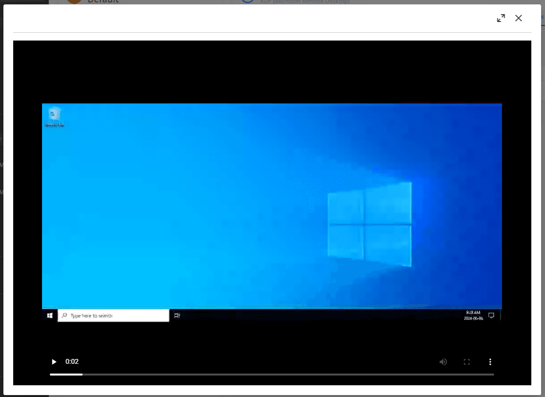 The in-app recording playback requires the latest Devolutions Server release and at least Devolutions Gateway 2024.2.3.0.