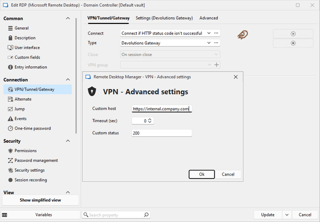 Hub Business and RDM support for VPN “Connect if HTTP status code isn’t successful” option