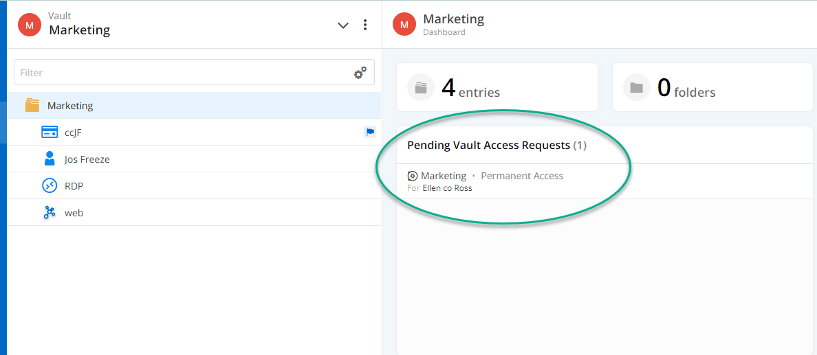 Administrators and vault managers now have the option to grant a user temporary access to a folder or entry for a specific duration (e.g., 30 minutes) or for a specific time frame without the user needing to request access beforehand.