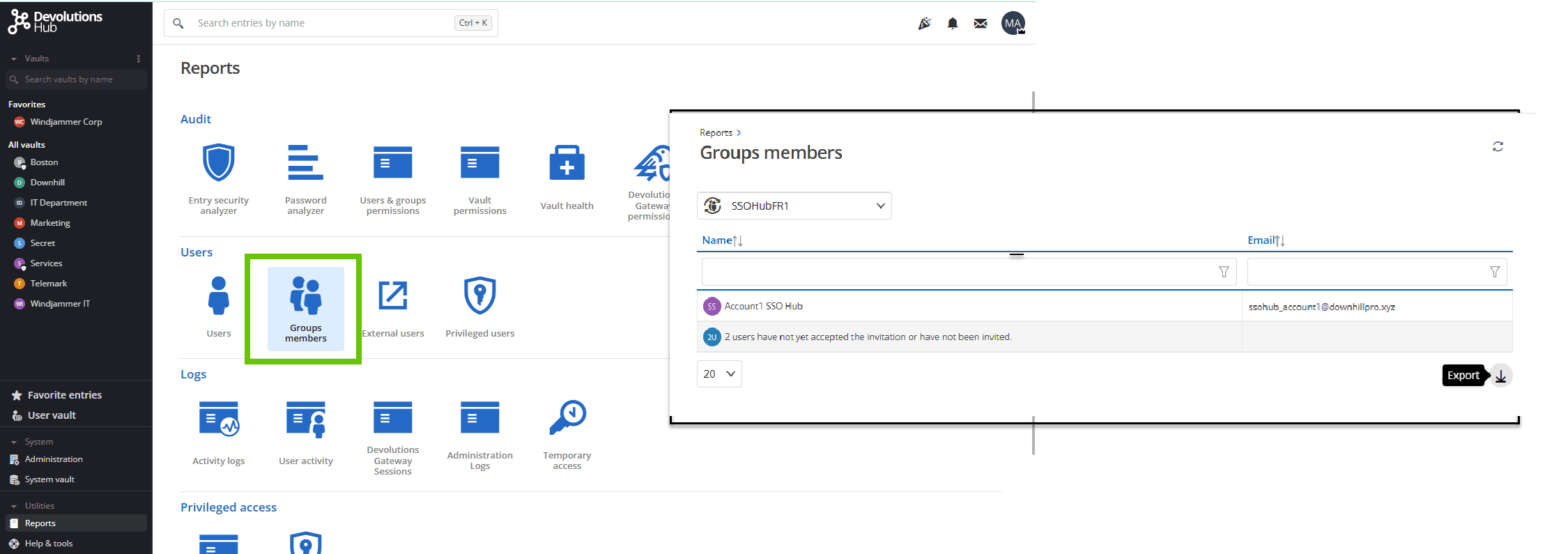 Looking for a complete list of your group members with an option to export it? Head over to Reports > Group members. By selecting the group, you’ll see all members listed. If you select a user group from your provisioning identity provider, in addition to seeing the members that have joined your Hub, you’ll see how many members have not yet joined.