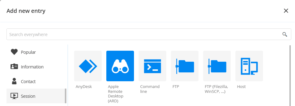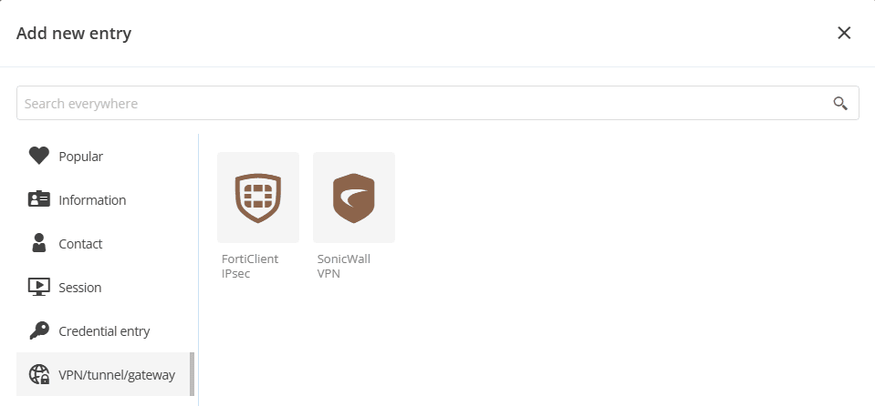 You can now add and manage FortiClient and SonicWall VPN entries as well as ARD sessions directly from Hub’s web interface. Since these entries could previously only be managed through Remote Desktop Manager, this enhancement offers Hub users greater flexibility and convenience, particularly with ARD sessions, which can be opened seamlessly within a web session in Hub.