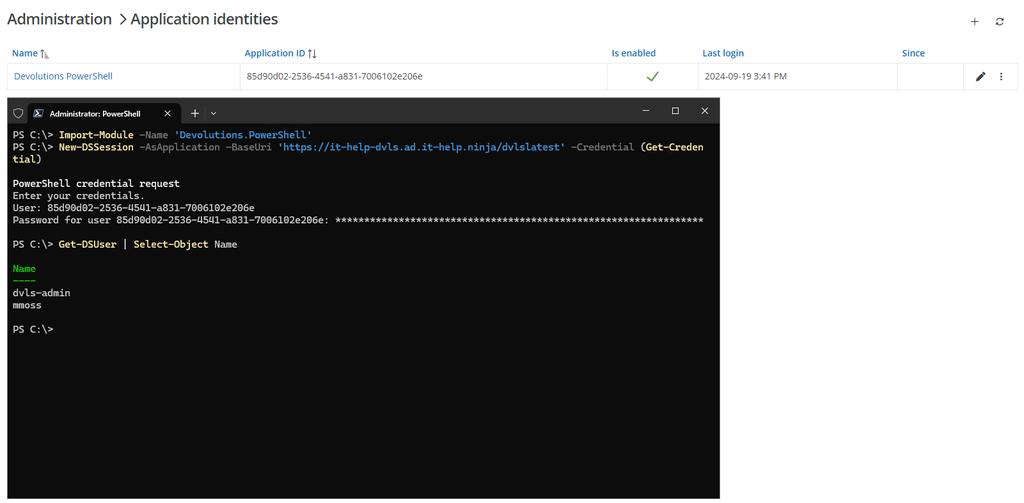 Use application identities through the Devolutions.PowerShell module