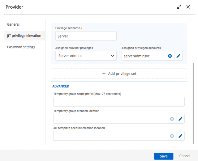 Once enabled under a supported provider, such as Active Directory, navigate to Advanced Settings and configure the JIT template account creation location. Now, when you check out a PAM account with just-in-time settings, a new temporary account with the requested permissions is created for the duration of the checkout.