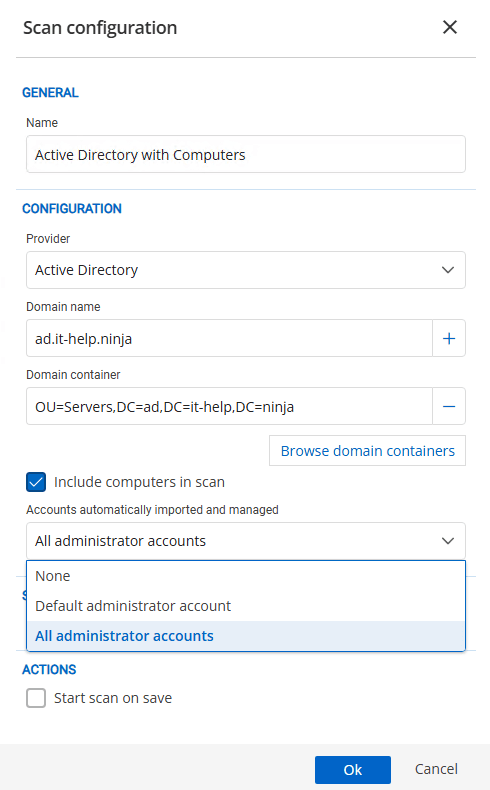 Import all admin accounts with the Active Directory built-in PAM provider