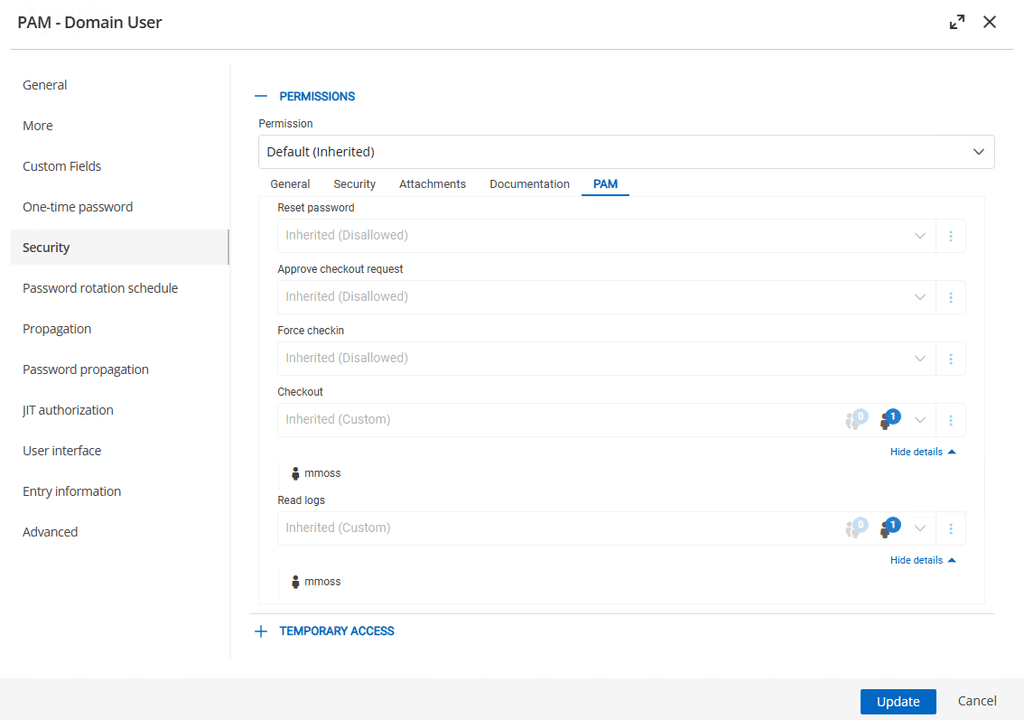 PAM accounts now support specific permissions such as resetting passwords, forcing check-ins, or reading logs. Lock down your PAM accounts even further with these PAM-specific permissions!