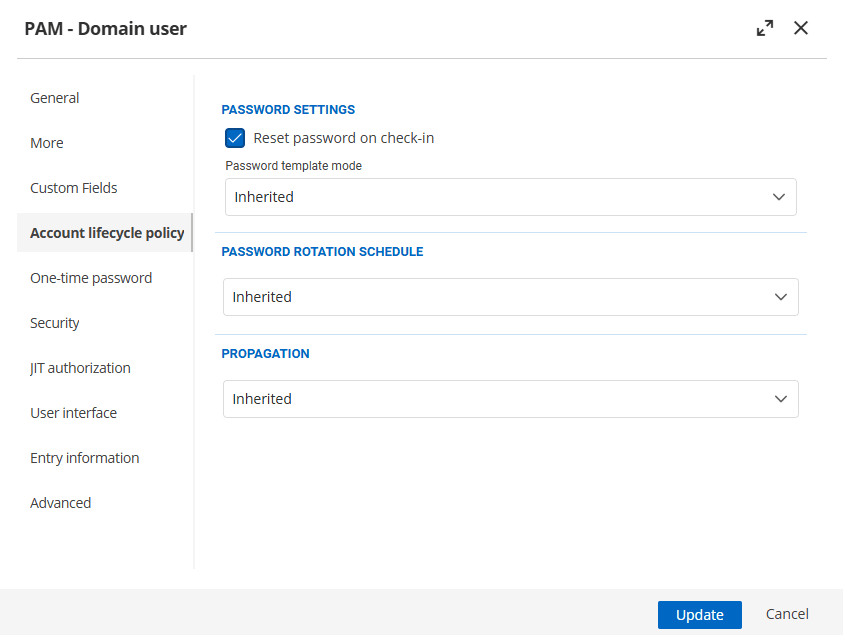To further optimize workflows, we’ve consolidated the password rotation and propagation settings into a unified Account lifecycle policy section. This change makes it easier to locate and configure all related settings in one place.