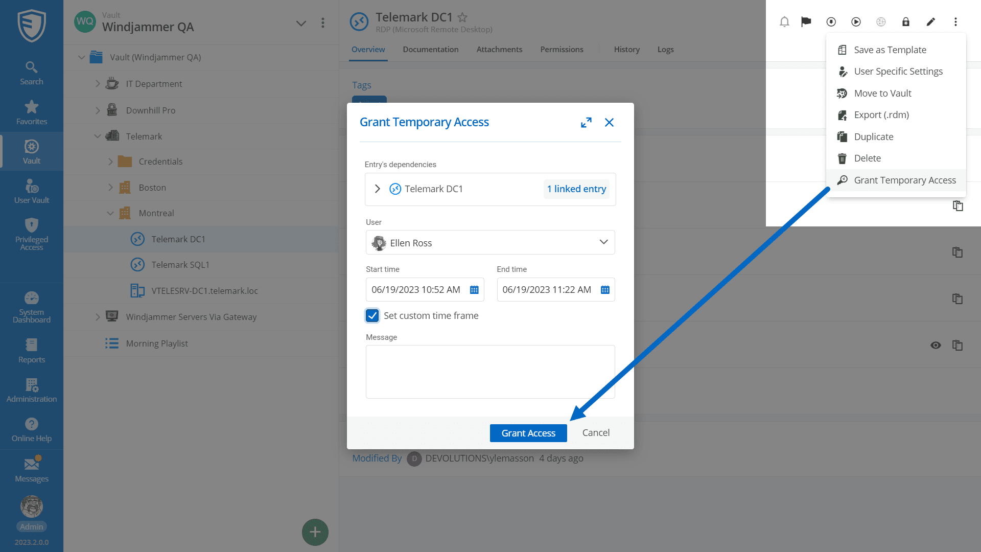We have made two significant improvements to how the Temporary Access function works in version 2023.2 (note that we have also made similar improvements to the latest versions of Remote Desktop Manager and Devolutions Hub Business. Here is what’s new: