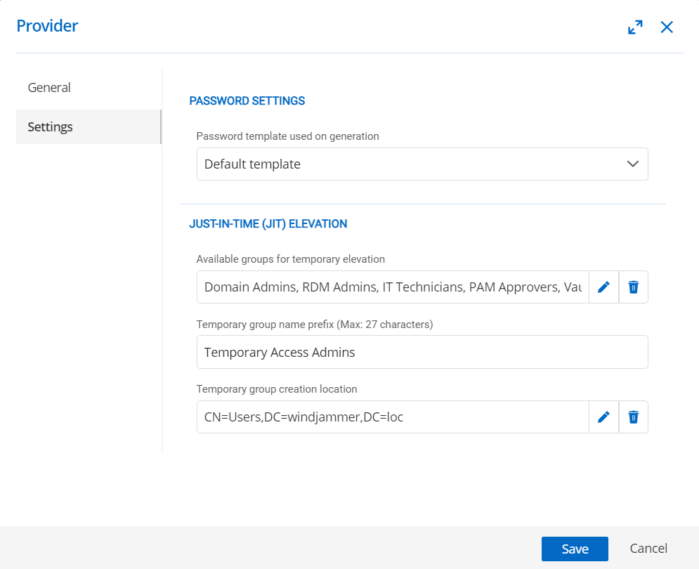 This new feature allows specific users to temporarily request elevated permissions on privileged accounts. The available accounts must first be configured in the PAM Provider settings, where specific Active Directory accounts are selected for elevation. These temporary groups are dynamically generated with a limited lifespan. Upon check-in, the temporary dynamic group is deleted, and the user’s standard permissions are restored.