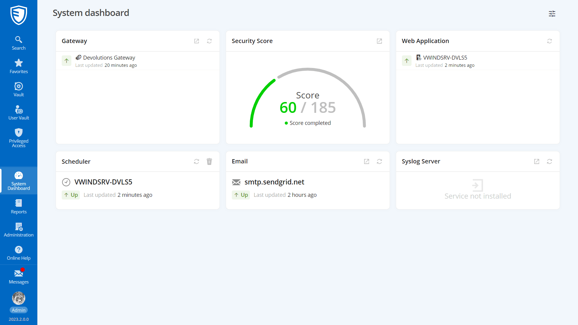 The System Dashboard now displays the status of both the Syslog and Email modules. If an issue is detected and one of the modules is no longer responsive, a notification email will be automatically sent to the Administrator(s).