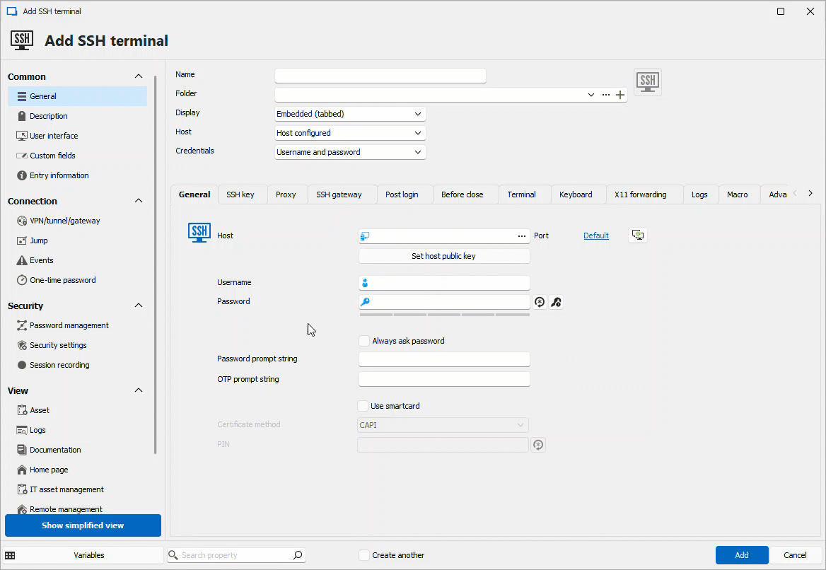 We’ve added new RDP and SSH sessions specifically designed to leverage Delinea’s Secret Server proxy. By using the proxy alongside Delinea’s robust conditional access policies, you can ensure that RDP and SSH connections are securely managed and controlled. The custom RDP entry maintains all the familiar settings of a regular RDP session, while the SSH connection offers the same standard configuration options, customizable background colors and fonts, configurable keyboard settings, and more.