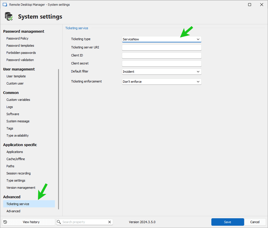 It’s now possible to add a prompt for specifying a ticket in ServiceNow (only for SQL Server for now). Accessible through Administration > System settings > Ticketing service, this option will make access requests and tasks significantly easier by validating the reason for connecting to endpoints where a ticket number is required. This is also useful for logging purposes, especially for audit trails.