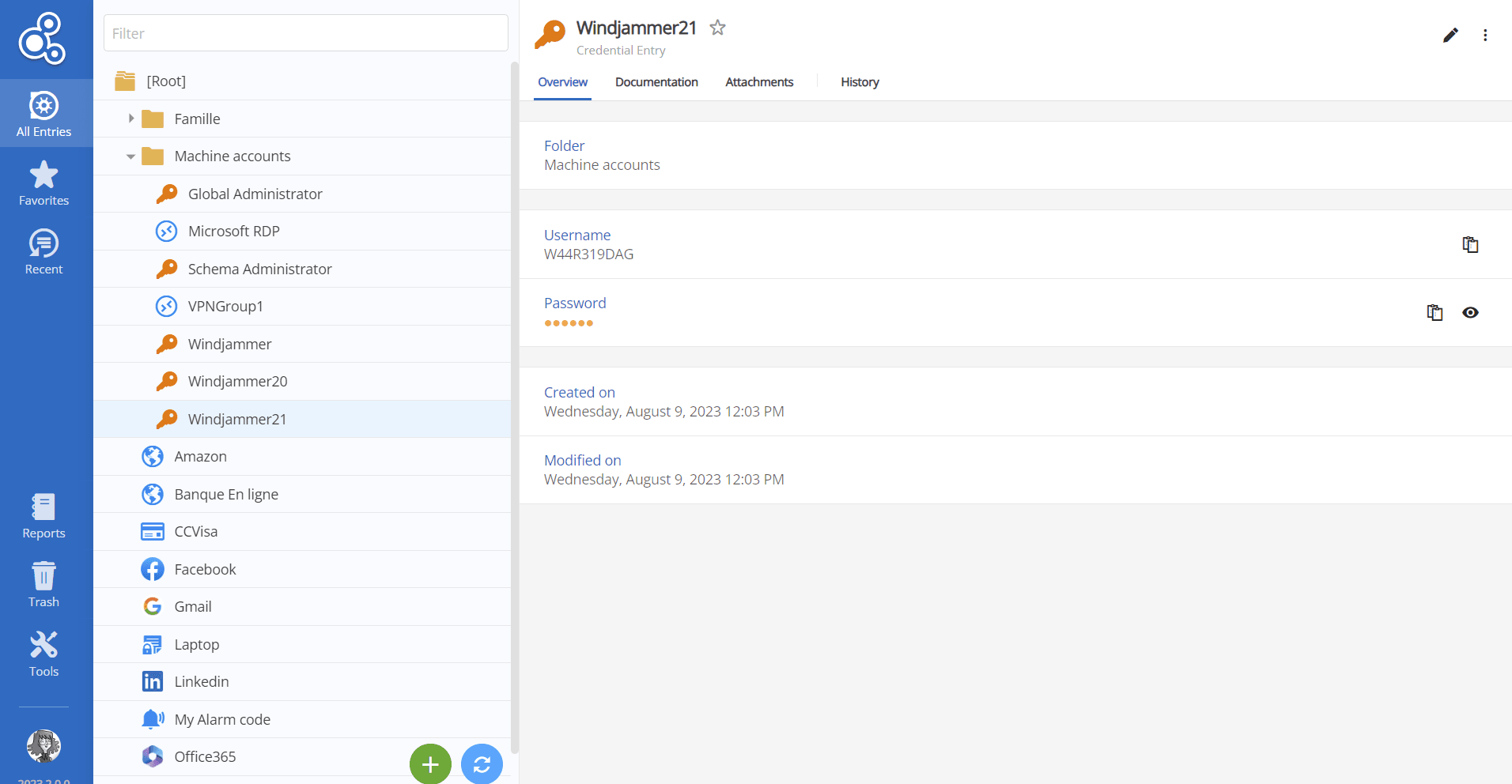 - the ability to view entry history and deleted entries.